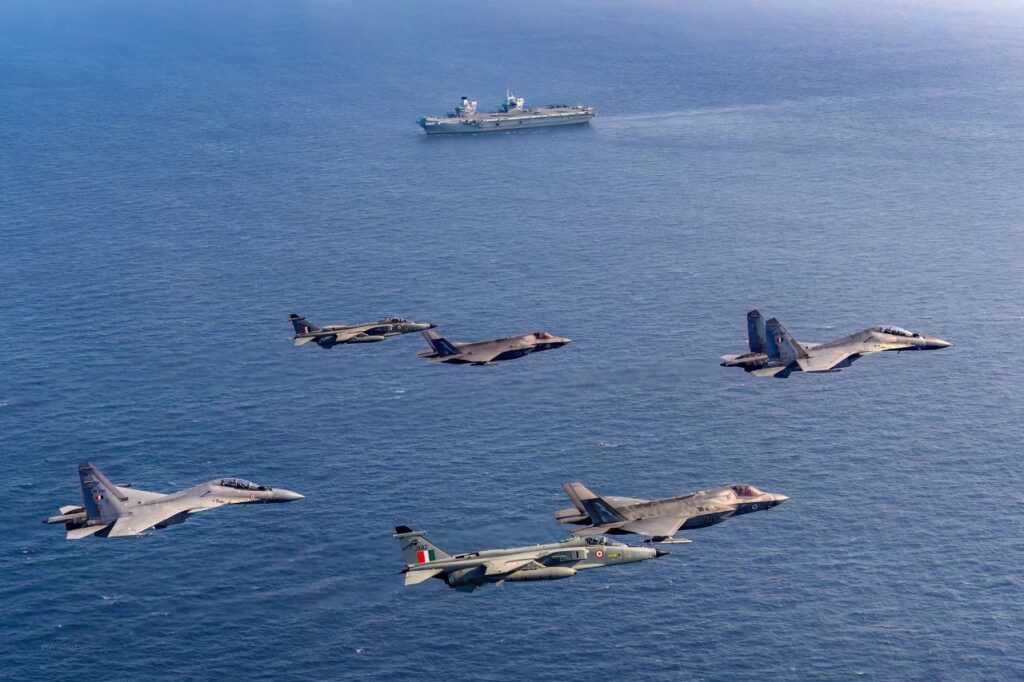 भारतीय वायु सेना ने ब्रिटेन की रॉयल नेवी के F-35B विमानों के साथ HMS प्रिंस ऑफ वेल्स से हिंद महासागर क्षेत्र में संयुक्त अभ्यास किया।भारतीय वायुसेना और ब्रिटेन की रॉयल नेवी के बीच आयोजित किया गया यह संयुक्त अभ्यास न केवल सामरिक दृष्टि से महत्वपूर्ण है, बल्कि दोनों देशों के बीच गहरे सैन्य संबंधों को भी दर्शाता है। इस अभ्यास में भारतीय वायुसेना के अत्याधुनिक विमानों ने भाग लिया, जो इसके उन्नत तकनीकी कौशल को उजागर करता है।